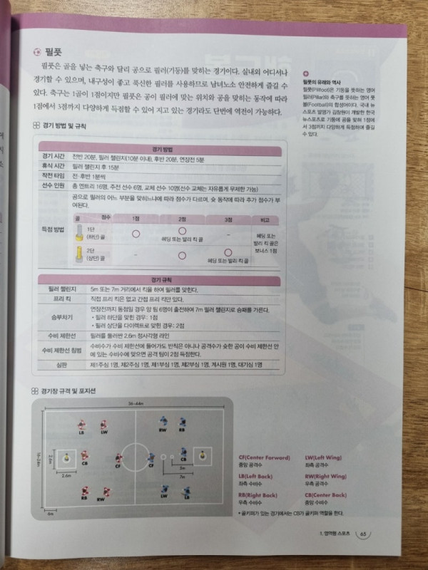 또한, 필풋은 풋살과 함께 2025년도 고등학교 체육 교과서에 수록되었습니다.