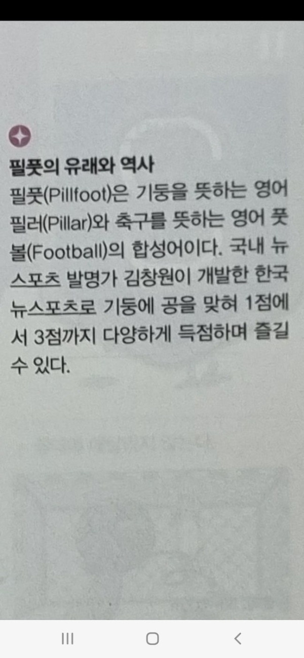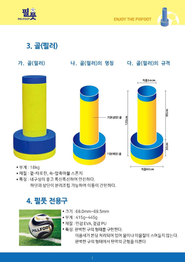 필풋은 필러(pillar)와 풋볼(football)의 합성어로 한국 개발 축구형 뉴스포츠입니다.