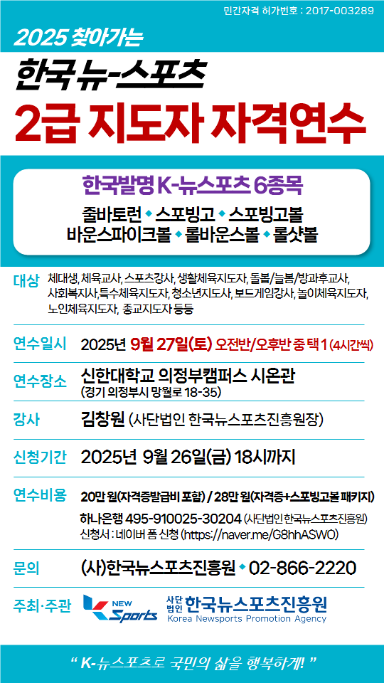 2025 찾아가는 한국뉴스포츠 2급 지도자 자격연수 안내(의정부)