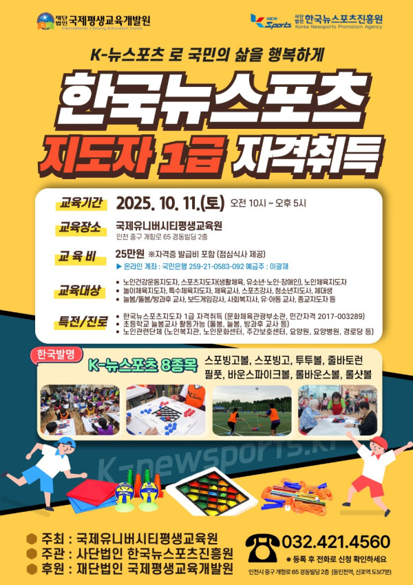 2025 찾아가는 한국뉴스포츠 1급 지도자 자격연수 안내(인천)
