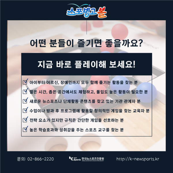 한국뉴스포츠진흥원에서 '스포빙고볼' 소개 카드 뉴스를 제작했습니다!
