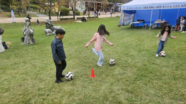 2025년 10월 18일(토), 환한 웃음과 함성으로 가득 찼던 서울 광진구 어린이대공원. 저희 (사)한국뉴스포츠진흥원이 축구형 뉴스포츠 ‘필풋’과 야구형 뉴스포츠 ‘투투볼’ 홍보 부스를 운영했기 때문인데요, 어린이부터 청소년, 대학생, 부부까지 다양한 연령층이 함께 참여하며 모두 즐거운 주말 축제가 되었습니다.