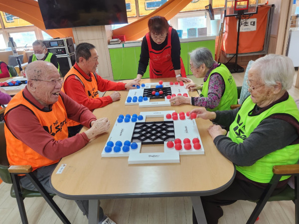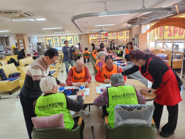 노인문화센터 어르신들 보다 연세도 많고 몸이 불편한 어르신도 있어 새로운 종목인 '스포빙고볼'을 잘 하실 수 있을까 걱정했는데, 생각보다 잘 하고 재미있어 하시며 웃고 즐기는 모습에 지켜보는 센터장님과 선생님들이 놀라기도 하고 흐뭇해 하기도 하셨습니다.