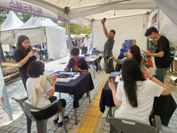 체험 열기는 정말 뜨거웠습니다. 고등학생 친구들부터 대학생은 물론, 인도네시아, 파키스탄 출신 교환학생과 인도 연구원, 중국 학생분들까지 스포빙고볼의 짜릿한 매력을 만끽했습니다. “생각보다 어려워서 더 재밌다!”, “다음에도 꼭 하고 싶다!”라는 반응이 이어지며 웃음과 환호성으로 가득 찼던 현장!✨ 국적을 넘어 모두 하나 되는 순간이었습니다:)