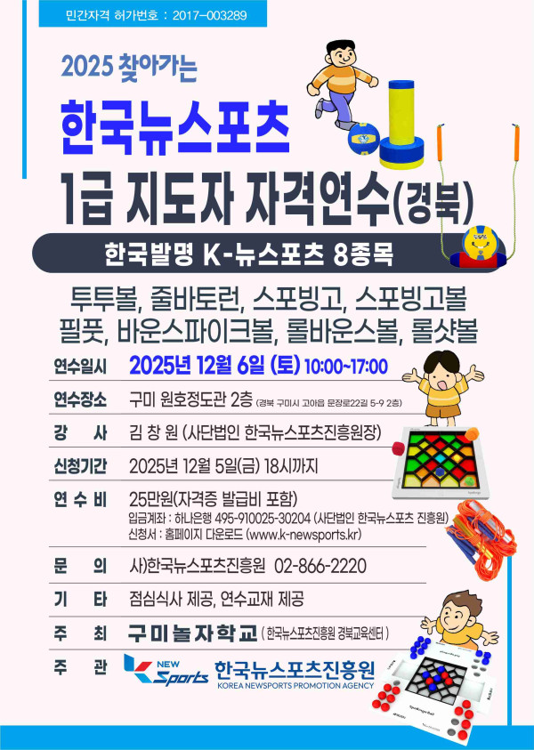 2025 찾아가는 한국뉴스포츠 1급 지도자 자격연수 안내(구미)