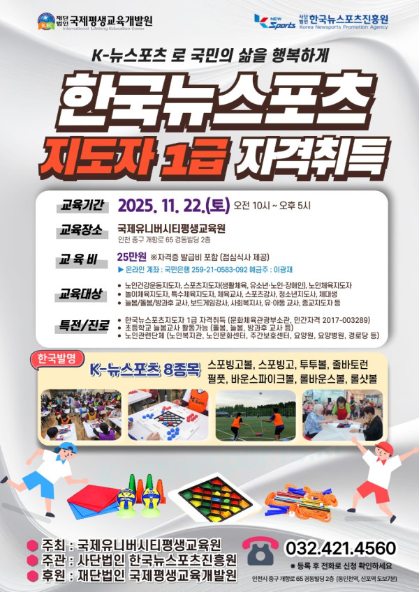 2025 찾아가는 한국뉴스포츠 1급 지도자 자격연수 안내(인천)