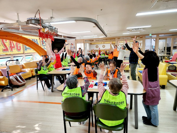 노인문화센터 어르신들 보다 연세도 많고 몸이 불편한 어르신도 있어 새로운 종목인 '스포빙고볼'을 잘 하실 수 있을까 걱정했는데, 생각보다 잘 하고 재미있어 하시며 웃고 즐기는 모습에 지켜보는 센터장님과 선생님들이 놀라기도 하고 흐뭇해 하기도 하셨습니다.